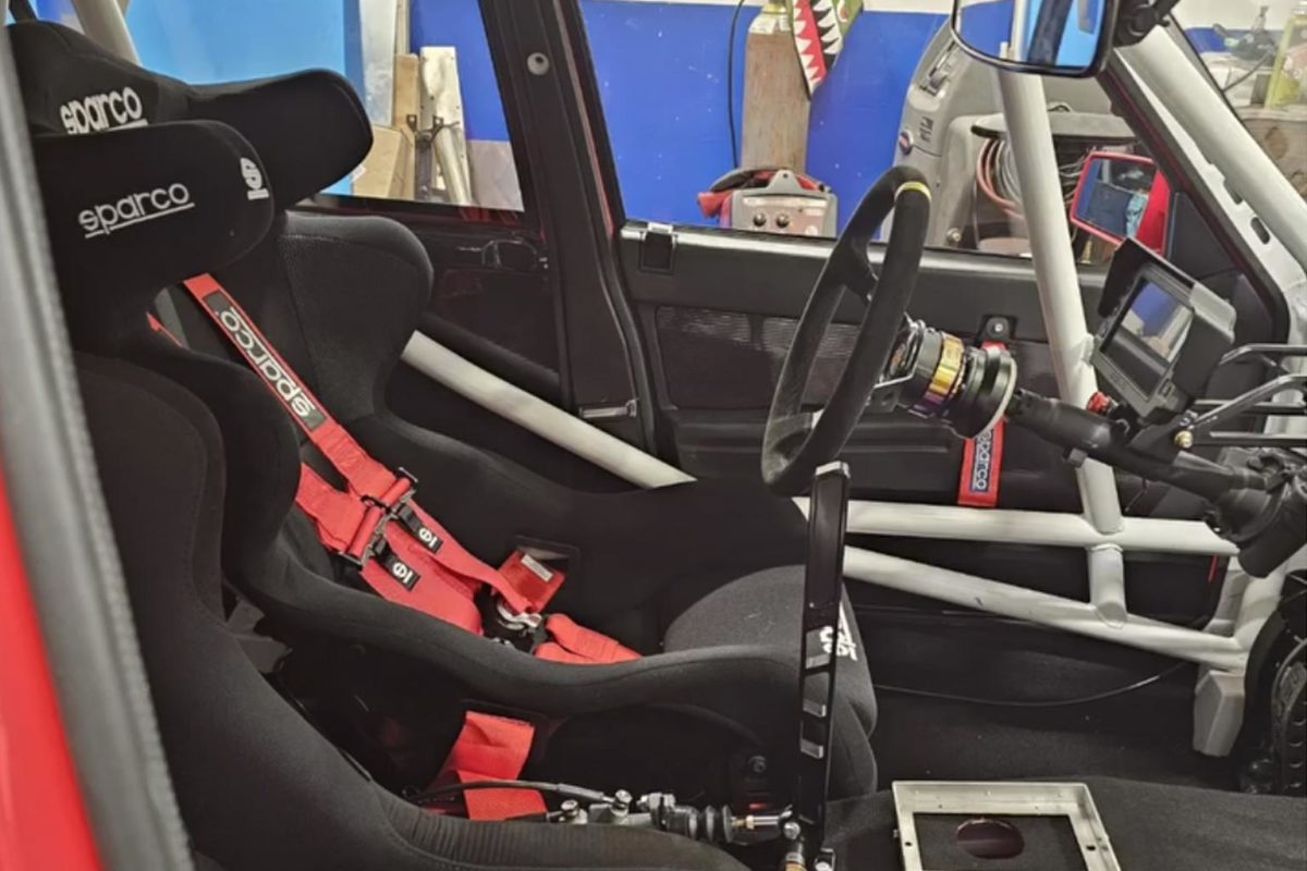 Cilinderkop en kleppentrein: versterkte klepveren (zichtbaar in goud of chroom). Motormanagement: standalone ECU (zichtbare behuizing met aangepaste blauw/geel/rode kabelboom), breedbandsensor voor nauwkeurige afstelling van lucht/brandstofmengsel. Koeling: extra tanks, hoogwaardige slangen, waarschijnlijk extra oliekoeler.