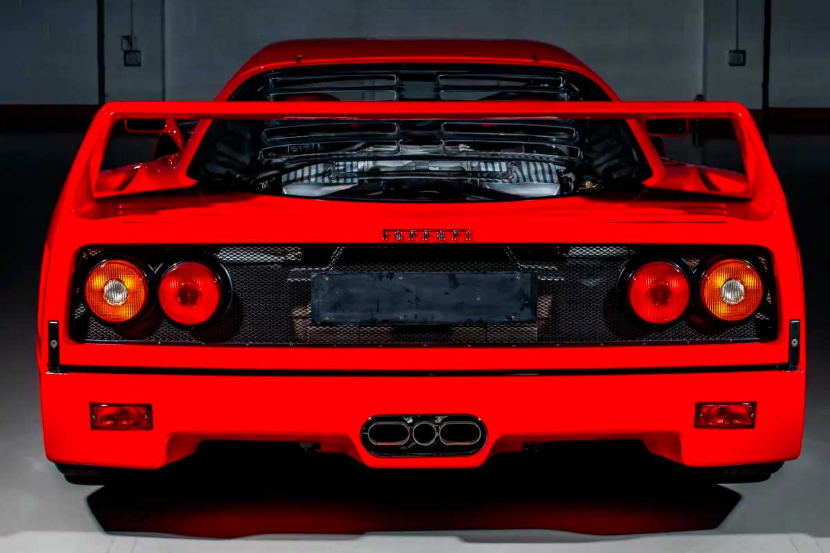 De auto in het hart van de koffer is een Ferrari F40 uit 1992, een van de laatste auto's die in Maranello zijn geproduceerd. Geïntroduceerd in 1987 om 40 jaar Ferrari, De F40 is een van de meest legendarische supercars uit de geschiedenis geworden. Onder het door Pininfarina ontworpen koetswerk ligt een 2,9-liter twin-turbo V8 met een vermogen van 478 pk, gekoppeld aan een handgeschakelde vijfversnellingsbak. Geheel volgens de filosofie van die tijd heeft de F40 geen ABS, tractiecontrole of elektronische hulp: het is allemaal aan de bestuurder.