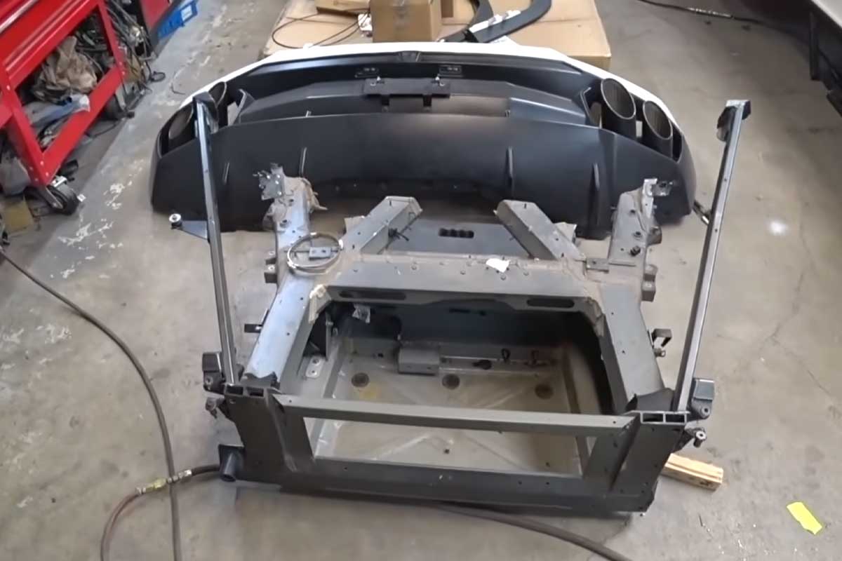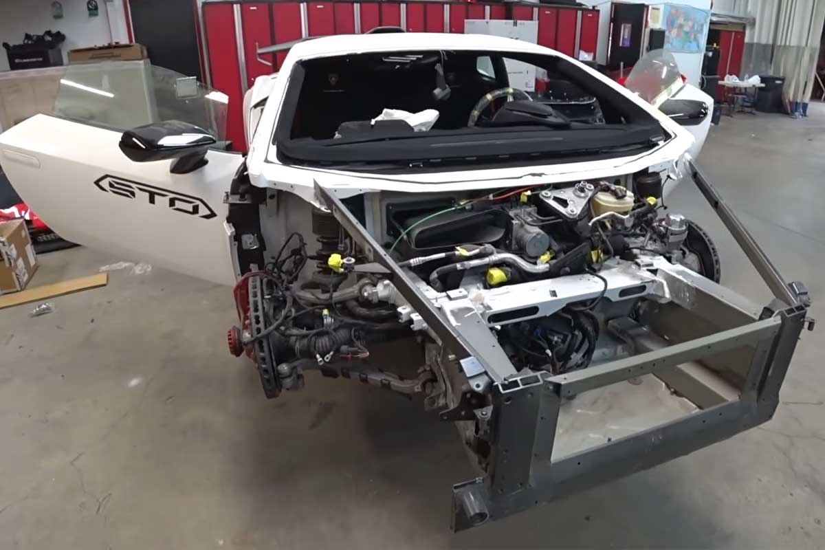 Het voorste chassis werd letterlijk verpletterd, waardoor de monteur een heel deel van de structuur moest vervangen. Volgens hem is de Huracán een van de moeilijkste auto's om te repareren vanwege het ontwerp en de complexe assemblage van de onderdelen.