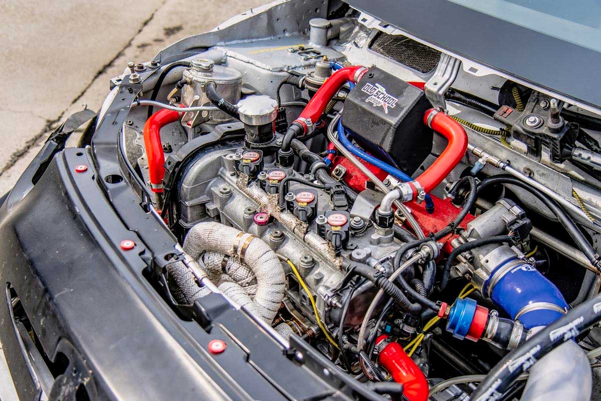 O motor turbo original de 1,4 litros foi completamente retrabalhado e modificado para debitar cerca de 600 cv, todos eles enviados para as rodas dianteiras. Os pormenores técnicos são para os especialistas, mas podemos mencionar a utilização de um turbo Garrett G25/660, peças forjadas e recalibradas, injectores de 1000cc e um mapa orientado para o desempenho puro numa volta de voo. Uma caixa sequencial Kotouc de 7 velocidades com semi-eixos reforçados é utilizada para alimentar a monstruosa cavalaria.