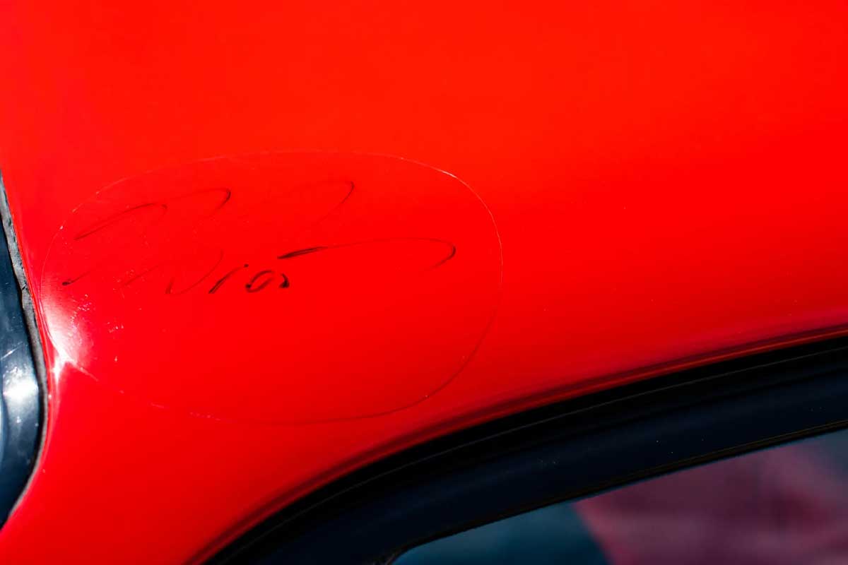 O chassis número 83249, um modelo destinado ao mercado suíço, foi construído na configuração mais pura: sem catalisadores ou suspensão ajustável. Prost recebeu-o... mas nunca o utilizou. Antes de o vender, assinou o tejadilho do carro, uma assinatura que foi posteriormente protegida por um verniz transparente que ainda hoje pode ser visto.