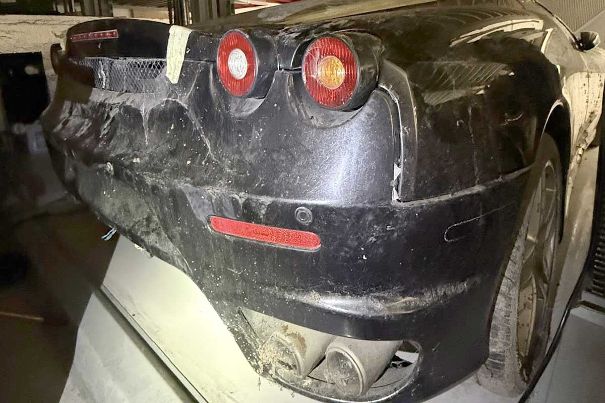 Um olhar mais atento às imagens publicadas nas redes sociais revelou também alguns pormenores inquietantes. Um dos comentadores, por exemplo, salienta que uma ponteira de escape parece estar presa por quatro pontos de soldadura, pondo em dúvida quaisquer reparações aproximadas efectuadas no passado. Tudo isto reforça a ideia de que este Ferrari F430 não só sofreu de um mau armazenamento, mas também de uma falta geral de cuidados mecânicos e estéticos ao longo de muitos anos.