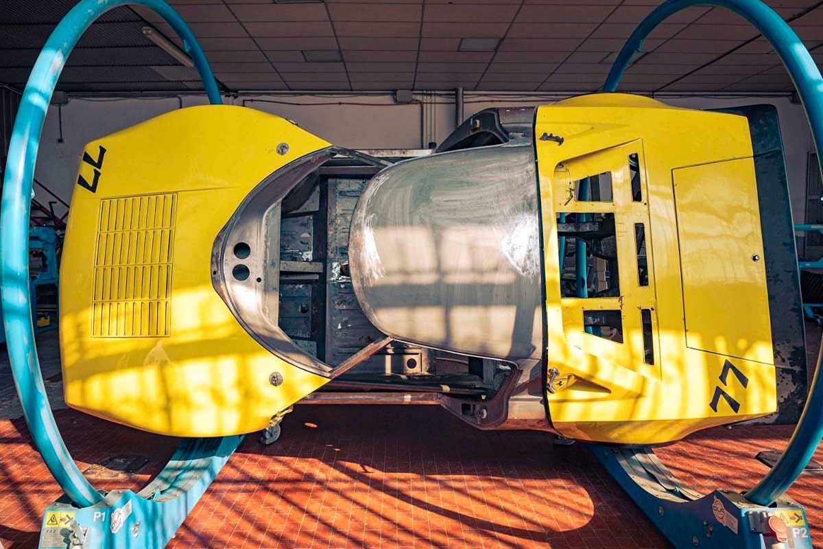 O passo seguinte foi enviar o chassis para um tratamento de cataforese para proteger o metal. Embora não tenha sido aplicado na altura, será completamente indetetável quando o carro for pintado e evitará eficazmente a corrosão futura. O chassis foi enviado para a oficina para o ajuste final, antes da aplicação do primário e da tinta. Após a camada de base preta padrão, a tonalidade específica de amarelo foi reproduzida utilizando tinta da época encontrada quando o chassis foi despojado. Foram instalados vários sistemas renovados, incluindo a suspensão completa, a cremalheira da direção, os pedais, os travões, o radiador e as ventoinhas de arrefecimento. O melhor de tudo é que o lendário motor Ferrari Dino V6 deste Stratos ganhou vida pela primeira vez em décadas durante o seu funcionamento no dinamómetro. O motor funcionou sem qualquer problema!