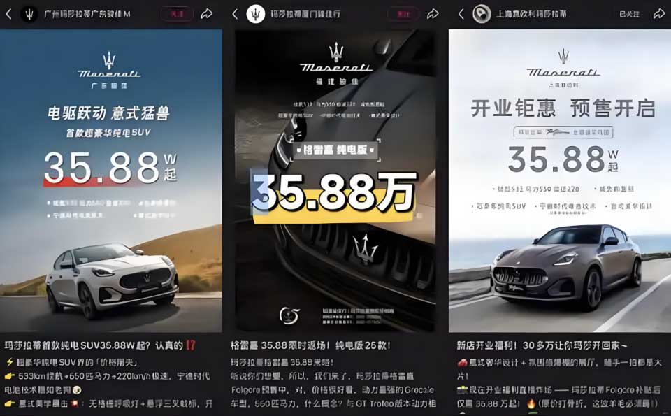 A este preço baixo, o Grecale Folgore não tem nada a ver com o produto ultra-luxuoso imaginado pela Maserati. A operação não é isolada: de Xangai a Suzhou e Nanjing, vários concessionários aderiram simultaneamente à promoção. Nalguns casos, os concessionários "compraram" stocks inteiros, podendo fixar livremente os seus próprios preços para evitar que os automóveis acabem nas suas mãos.