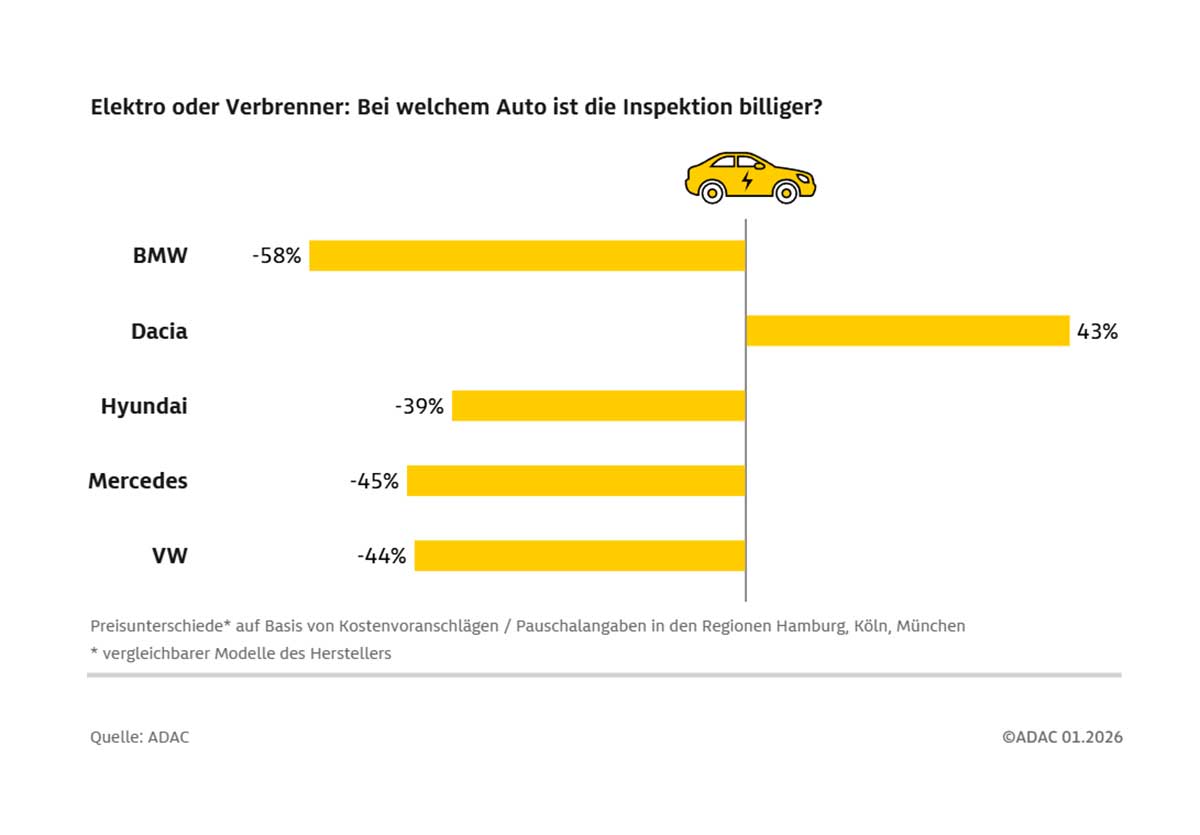 ADAC, motor tipinin yanı sıra bir başka belirleyici faktörün daha altını çiziyor: bayinin konumu. Şehir merkezlerinde bulunan atölyeler neredeyse sistematik olarak, bazen sadece birkaç düzine kilometre uzaklıktaki kenar mahallelerdekilerden daha yüksek fiyatlar talep etmektedir. BMW bu konuda bir örnektir. Hamburg'da bir BMW M440i içten yanmalı motorun muayenesi, şehir içinde kırsal bir bölgeye göre ortalama 10 % daha pahalıya mal olmaktadır. Elektrikli eşdeğeri BMW i4 için bu fark 41 %'dir. Bu fark, sürücüleri aynı marka ağı içinde bile şehir sınırlarının ötesindeki teklifleri karşılaştırmaya açıkça davet ediyor.