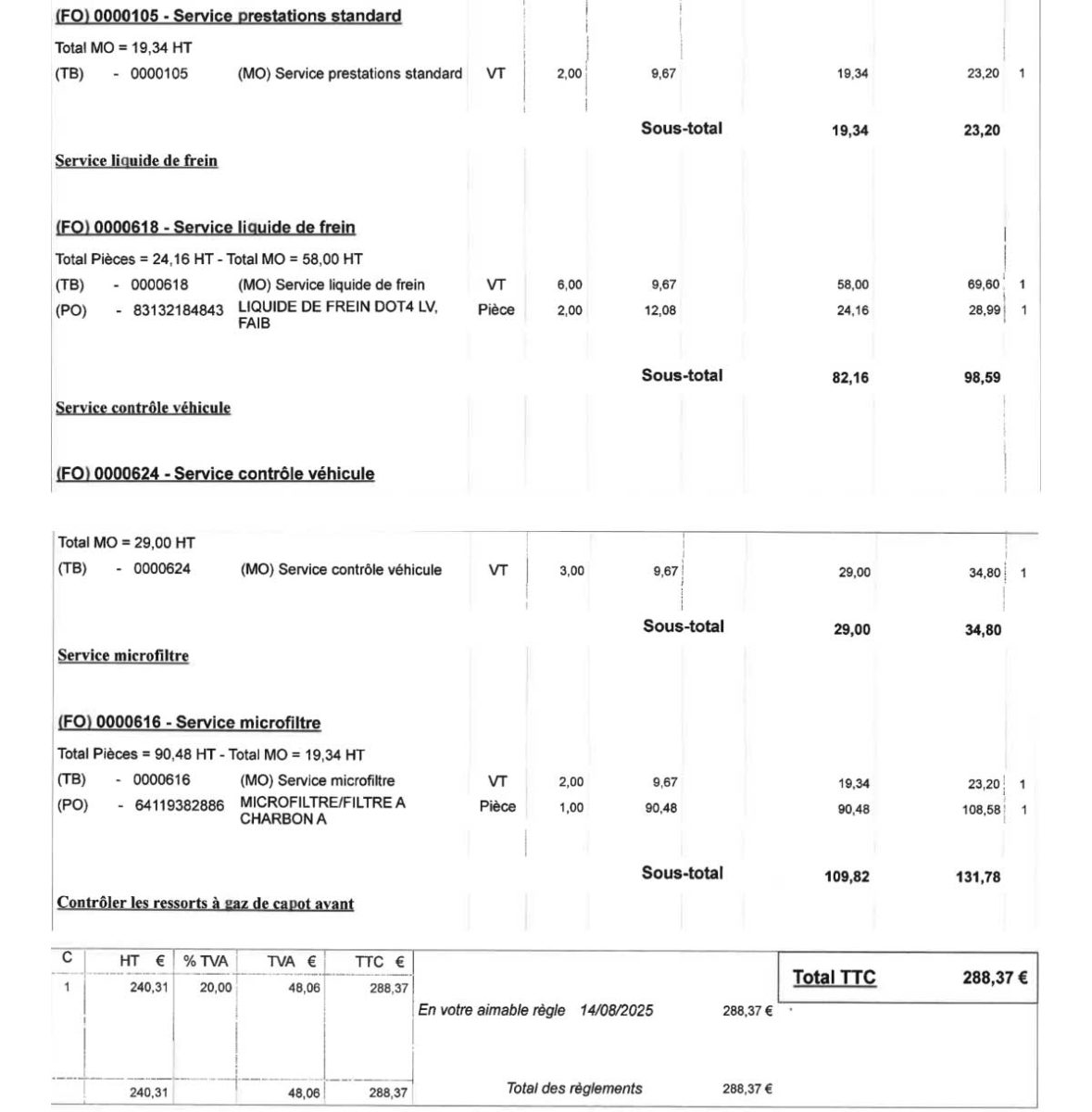 Elektrikli bir araç için bakım faturası örneği. Kaynak Italpassion