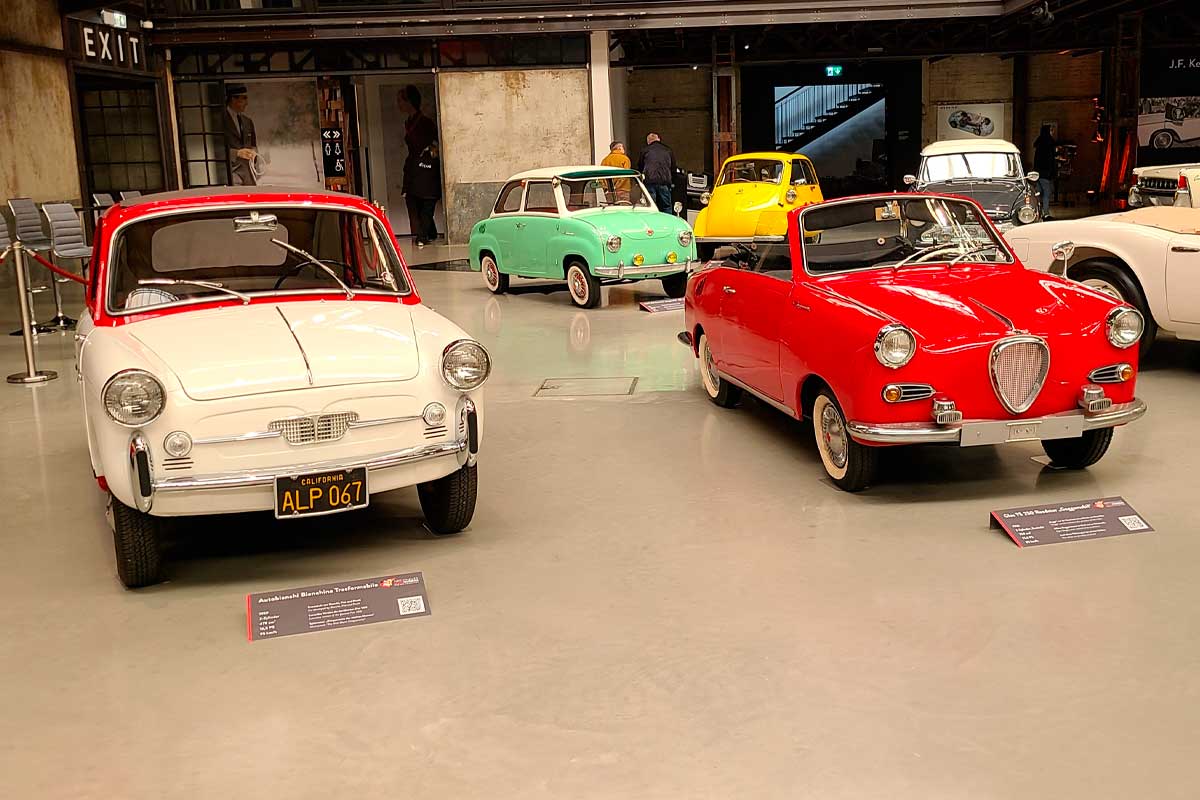 Birçok ülkeden modeller olsa da, İtalyan markaları özel bir rol oynamaktadır. Performans, tasarım ve belirli bir motor tutkusu fikrini somutlaştırırlar. Bu müzede onlar sadece başka bir mobilya parçası değil, önemli bir referans noktasıdır. Alfa Romeo yarış arabalarından dayanıklılık Ferrarilerine, Maserati, Lancia ve Autobianchi'ye kadar İtalya en efsanevi haliyle temsil edilmektedir.