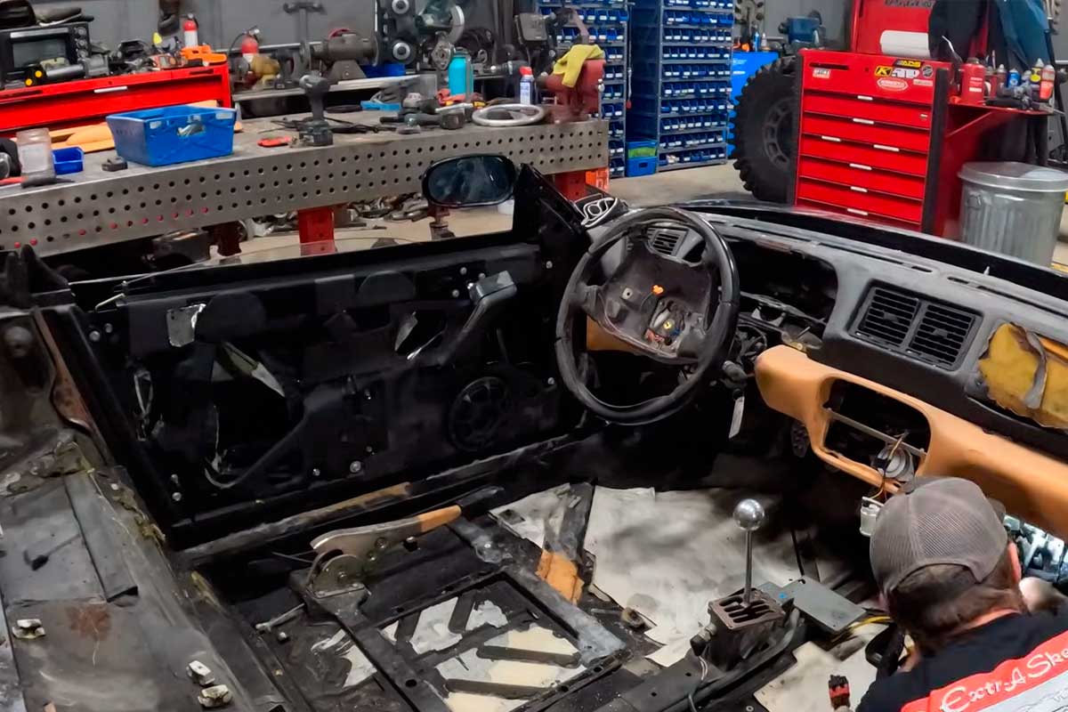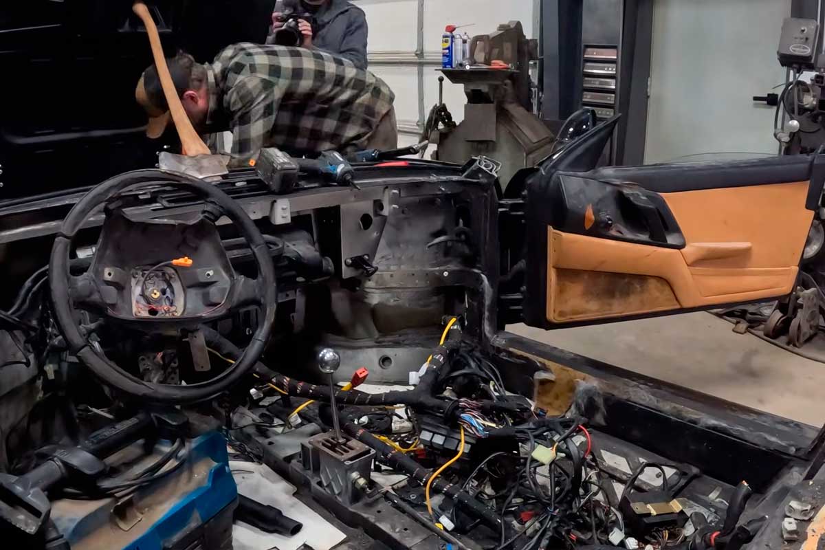 Gösterge paneli 'pişmiş', elektronik aksamın çoğu kullanılamaz durumda ve kutular ile kablo demeti ya çöpe atılmış ya da eBay'de satılıyor. YouTuber'lar kablo tesisatına sıfırdan başlayacaklarını varsaymakta hızlı davranıyorlar. Fikir basit: temel unsurları korumak ve gelecekteki dizel motorun etrafında yeni bir elektrik sistemi inşa etmek.