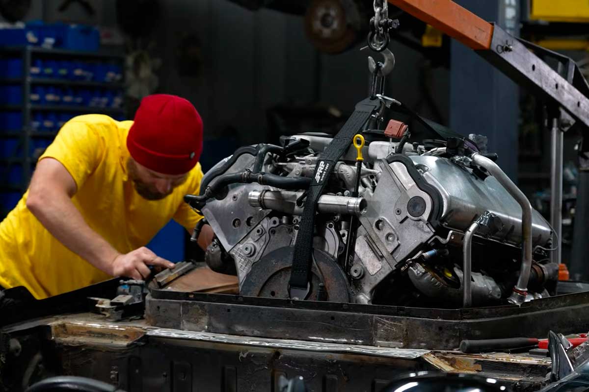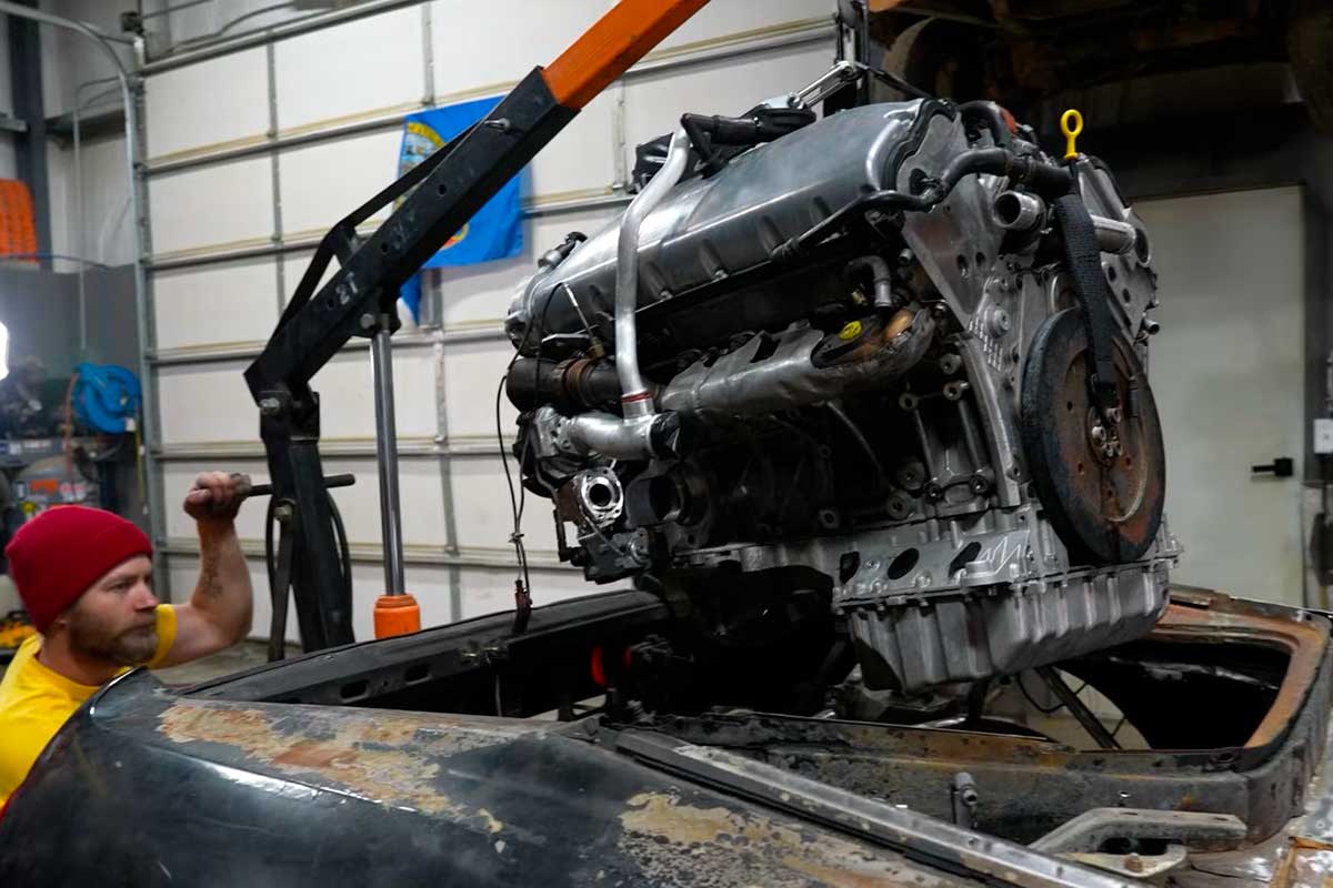 V10 kilolarca aksesuardan ve işe yaramaz borulardan arındırıldıktan sonra sıra herkesin beklediği ana geliyor: Ferrari'ye yaklaşmak. F355 ise önemli ölçüde hafifletildi. Deneme sürüşü dikkat çekiciydi: V10, F355 şasisine yaklaştırıldı ve ekip prensipte "neredeyse içeri kayabileceğini" belirtti. Kesilmesi gereken takviyeler ve yapılması gereken braketler var, ancak fikir onaylandı.