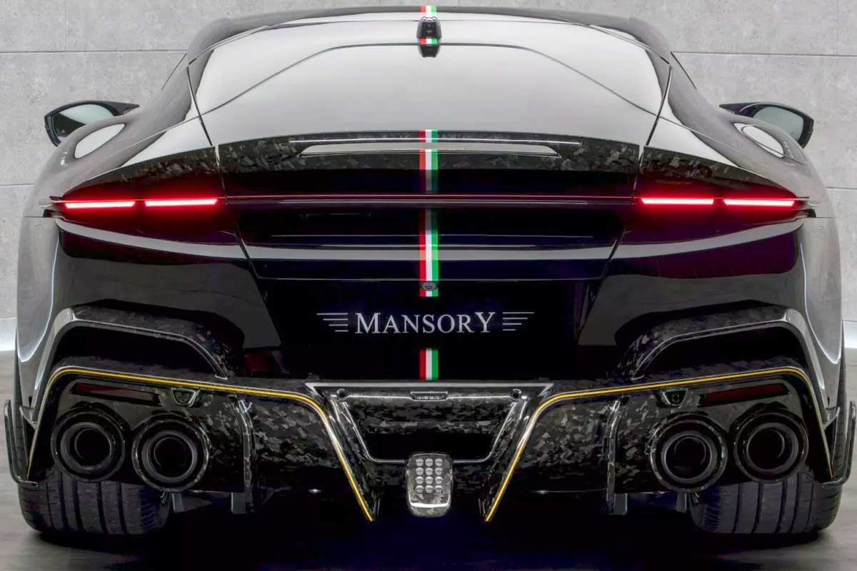 Monako'da tanıtılan araçta siyah ve karbon unsurlarla kontrast oluşturan koyu mor rengin yanı sıra kaputtan arkaya doğru uzanan İtalyan bayrağı renklerinde bir şerit yer alıyordu. Mansory ayrıca önde 21 inç ve arkada 22 inç ölçülerindeki yeni VF.5 dövme jantları da tanıtarak aracın gövde yapısına katkıda bulundu.