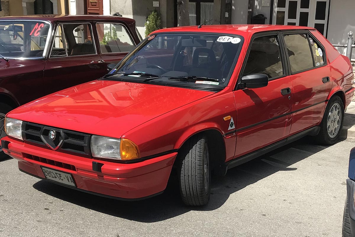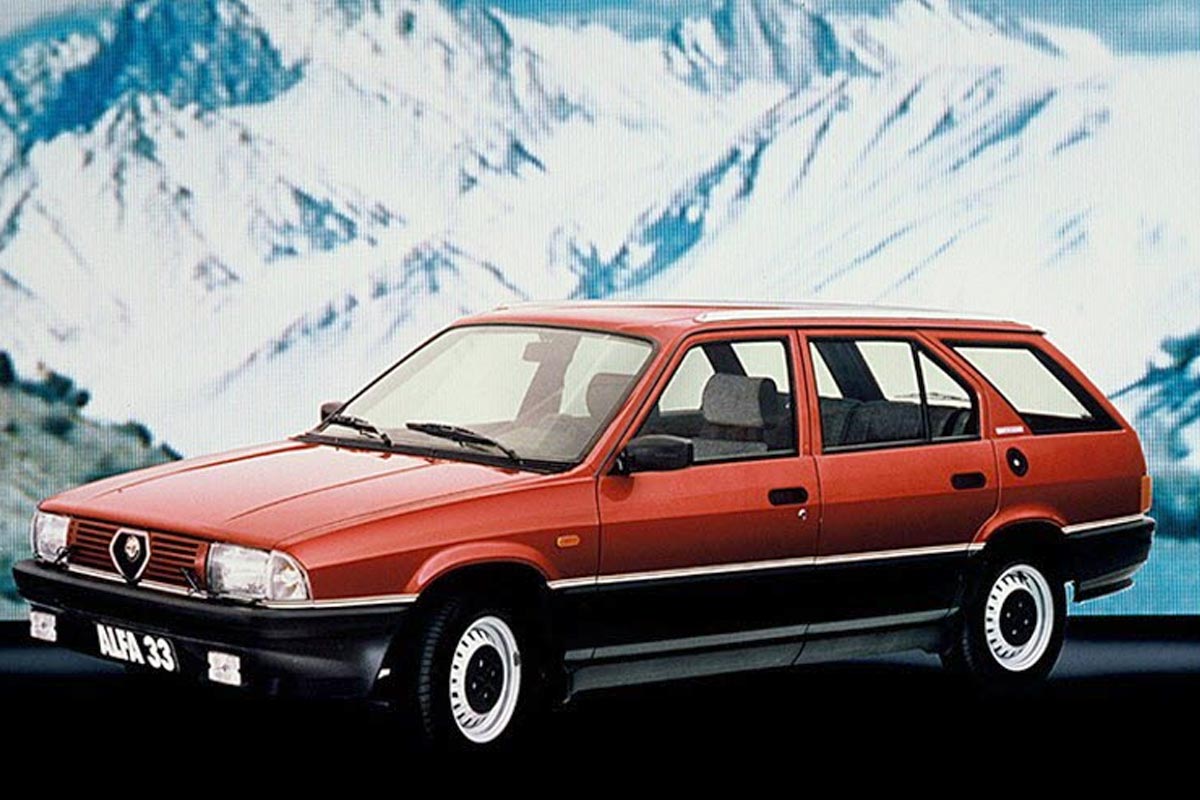 L’Alfa Romeo 33 est une compacte produite entre 1983 et 1995. Elle succède à l’Alfasud et devient l’un des modèles les plus diffusés de la marque. Disponible en berline compacte et en Sportwagon (break), elle se distingue par son poids contenu et ses moteurs boxer, offrant un comportement dynamique. La 33 connaîtra plusieurs évolutions au cours de sa carrière, avec des versions sportives Quadrifoglio Verde.